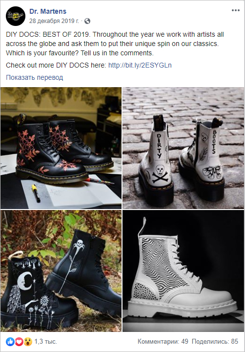 Бренд Dr. Martens сделал коллаж из самых популярных моделей обуви 2019 года.
