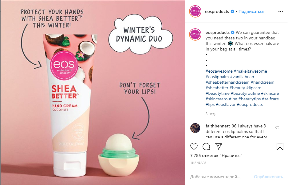 А бренд EOS дал советы по зимнему уходу и заодно прорекламировал свою продукцию.