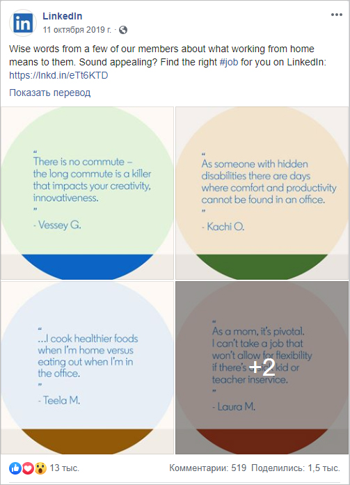 Компания LinkedIn опубликовала серию картинок с цитатами от своих пользователей на тему работы из дома.