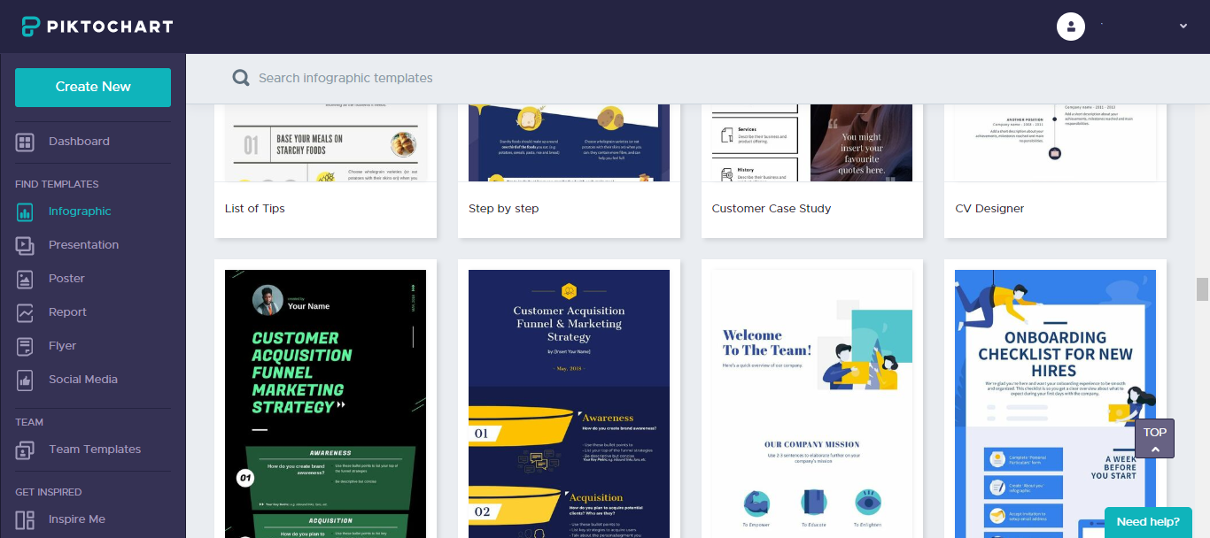 В программе доступны шаблоны, которые можно редактировать на свой вкус: добавлять и удалять блоки, менять их местами, управлять цветовой схемой, вставлять графические элементы и т. д. Кроме того, есть возможность создать инфографику с нуля.