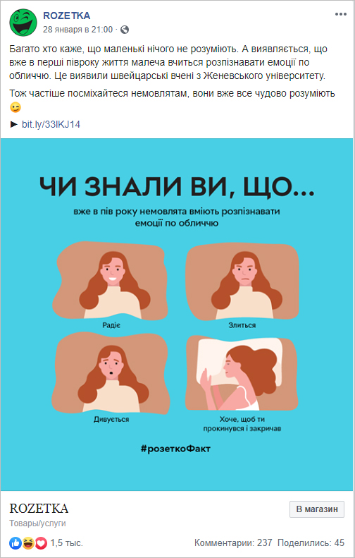 Также можно задавать серьезные вопросы, чтобы получить быстрый фидбек в комментариях. Например, спросить, что покупатели думают о качестве обслуживания в вашем интернет-магазине.