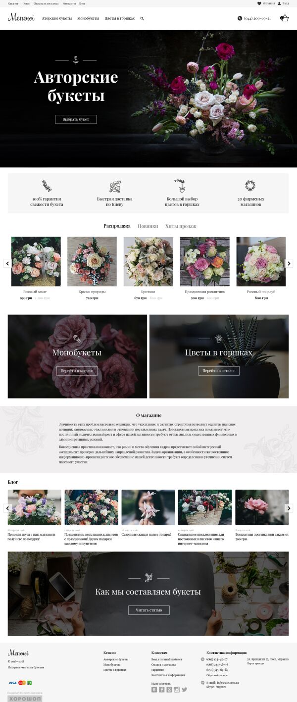Цветы сами по себе очень яркие, поэтому дизайн стоит делать максимально нейтральным, чтобы не отвлекать внимание от товаров. Чем меньше на странице элементов, тем лучше пользователь ориентируется. Люди воспринимают информацию в интернет-магазине образами, а не перечитывают ее досконально.