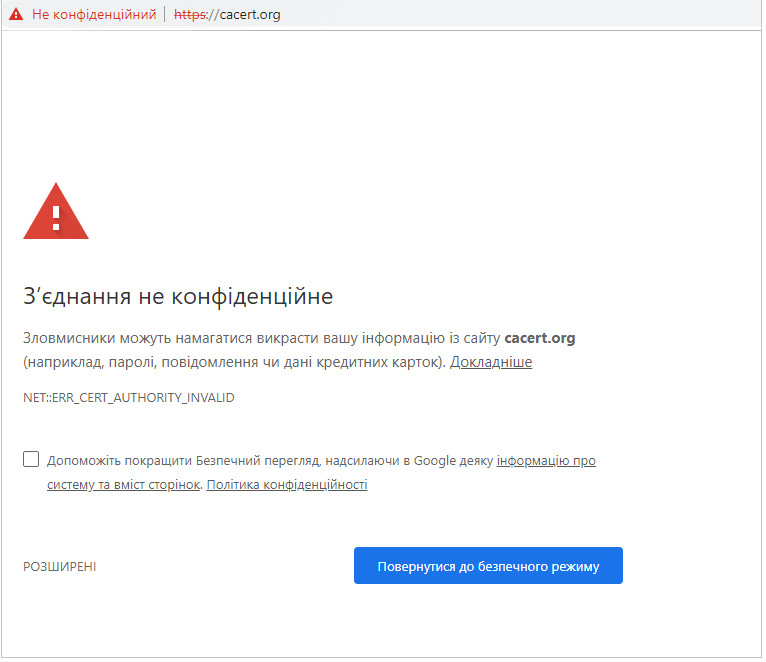 Но такой сертификат не подтверждает, кто именно стоит за сайтом. Он лишь удостоверяет, что кто-то контролирует домен.